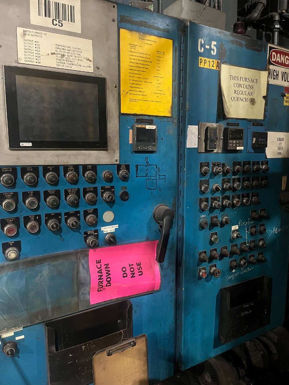 Surface Combustion Super Pro Electric Allcase complete with Brick Lining, Alloy Roller Rail Hearth, Dual Quench Cylinders, Carbon Probe, Waukee Flowmeters and Hunterdon VRT Transformer., Controls are mounted and wired in free standing enclosure complete with digital temperature control, high limit and carbon control. ...more
