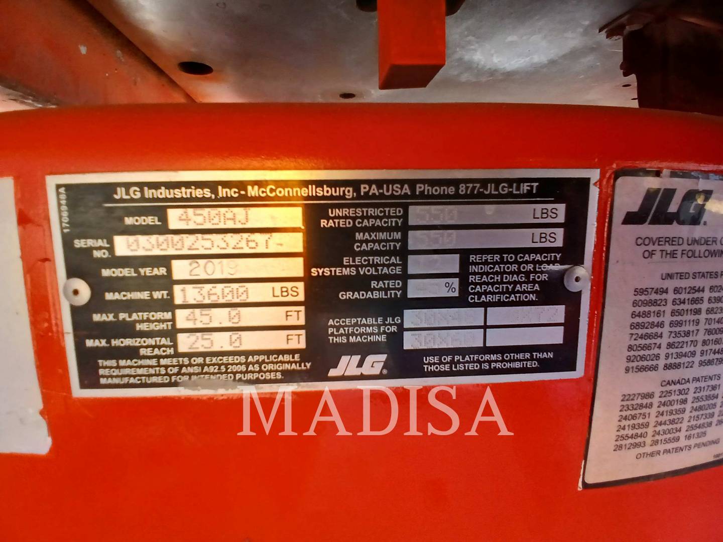 Jlg Industries, Inc. 450AJ 4WD, Articulated Boom Lift, 2773 hours, S/N: 300253267, 2019 Manufacturer: Jlg Model: 450AJ 4WD Year: 2019 Stock # P018355 Price: $36,500 USD - Finance for as low as $740/mth Estimated monthly payment valid upon approved credit. Request Info 6 For Sale by Madisa - Heavy Machinery Surplus Record Dealer Since 2022 Contact Seller Santa Catarina Mexico Carlos Galan 52-818...> Show Seller's Phone Number 52-818-400-2083 Let the seller know you found their listing on Surplus Record! View More Madisa - Heavy Machinery 's ListingsInquire Further with Madisa - Heavy Machinery! "*" indicates required fieldsName*Company*Email* PhoneZip / Postal Code*QuestionMake an OfferRequests Send me a shipping quote I am interested in financingSend Copy Email me a confirmation of this inquiryBuyer Protection Use our partner Escrow.com to buy or sell equipment safelyBuyer Protection Send me info about buyer protectionThis field is hidden when viewing the formDealer Email Buyers Who Viewed This Listing Also Viewed …JUST ADDED! Jlg Industries, Inc. 450AJ, Articulated Boom Lift, 955 hours, S/N: 300255622, 2018Category: Boom LiftsSeller: Stowers RentsLocation: Knoxville, TN Mfr: JlgModel: 450AJYear: 2018JLG 450AJ BOOM LIFT W/DEUTZ ENGINE T4F 2 WHEEL STEER, 33/150 X 16.5 PNEU TIRES 30X72 SE PLATFORM, SWING GATE, 60HZ SKY PWR THE FUEL TANK ON THIS UNIT WAS FULL WHEN IT LEFT OUR YARD. TO AVOID A REFUELING CHARGE, PLEASE RETURN THE UNIT WITH A FULL TANK OF FUEL. * * * * * * * * DO NOT DRILL ...more Jlg Industries, Inc. 450AJ JLG, Articulated Boom Lift, 1228 hours, S/N: 0300162065, 2012Category: Boom LiftsSeller: Boyd Cat CompanyLocation: Evansville, IN Mfr: JlgModel: 450AJ JLGYear: 2012ADE CONTROLS, Battery Powered with (8) 6V, 370 amp-hr batteries, Dimensions (Stowed): 5'9" W x 6'7"H x 21' 2" L, JLG Model E450AJ with Std Jib *Certified w/2 year Warranty, Machine Weight: 14,400 lbs, New Non-Marking Tires, New: Batteries, Platform, Paint, Decals, No Skypower, Platform Height: 45 ft - ...more JLG #450AJ, Boom Lift, 5960 Hours, s/N: 300255604, 2018Category: Boom LiftsSeller: Stowers Machinery Corp.Location: Knoxville, TN Mfr: JlgModel: 450AJYear: 2018Price:$60,000Hours 5960 Rating: As-Is Serial Num: 300255604 Phone: +1 865 218 8800 Contact: Tyler Brock Location: Kingsport, TN, Cat Product LinkJlg 450aj Boom Lift W/deutz Engine T4f W/sky Power. Jlg Industries, Inc. 460SJ, Articulated Boom Lift, S/N: 0300317190, 2024Category: Boom LiftsSeller: Wheeler Machinery - MarkLocation: Salt Lake City, UT Mfr: JlgModel: 460SJYear: 2024ENGINE BLOCK HEATER, FLASHING AMBER BEACON, HORIZONTAL OUTREACH: 39 FT, HYD,OIL COOLER (DTZ), INWARD SELF-CLOSING SWING GATE, PLATFORM CAPACITY-RES:600LBS, PLATFORM HEIGHT: 46 FT, PLATFORM WORKLIGHTS, PRICED NEW 05/24/24 KR. Jlg Industries, Inc. 400S D, Articulated Boom Lift, 2522 hours, S/N: 0300127587, 2008Category: Boom LiftsSeller: Empire Machinery - Heavy MachineryLocation: Winnemucca, NV Mfr: JlgModel: 400S DYear: 2008ATTACHMENTS SHOWN IN PICTURES ARE SUBJECT TO CHANGE, AND MAY NOT BE INCLUDED IN THE PRICE.Share × "*" indicates required fieldsYour Name*Your Email* Recipient's Email* Note to Recipient