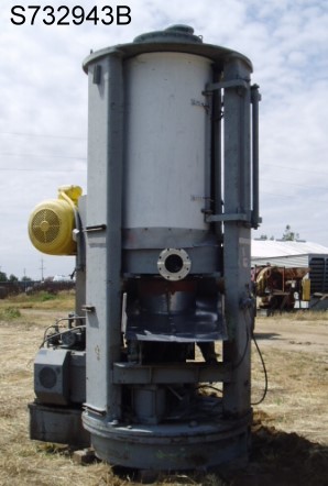 Jones vertical screw press, model P-225, type 2512, with all wetted parts being stainless steel. Unit equipped with 20 HP main drive thru gearbox, frac HP, drive on the shaker discharge assembly and air cylinder to operate the solids discharge cone. Include main screens, backup screens, reinforced poly outer doors / covers and solids discharge conveyors. Unit in good condition.
