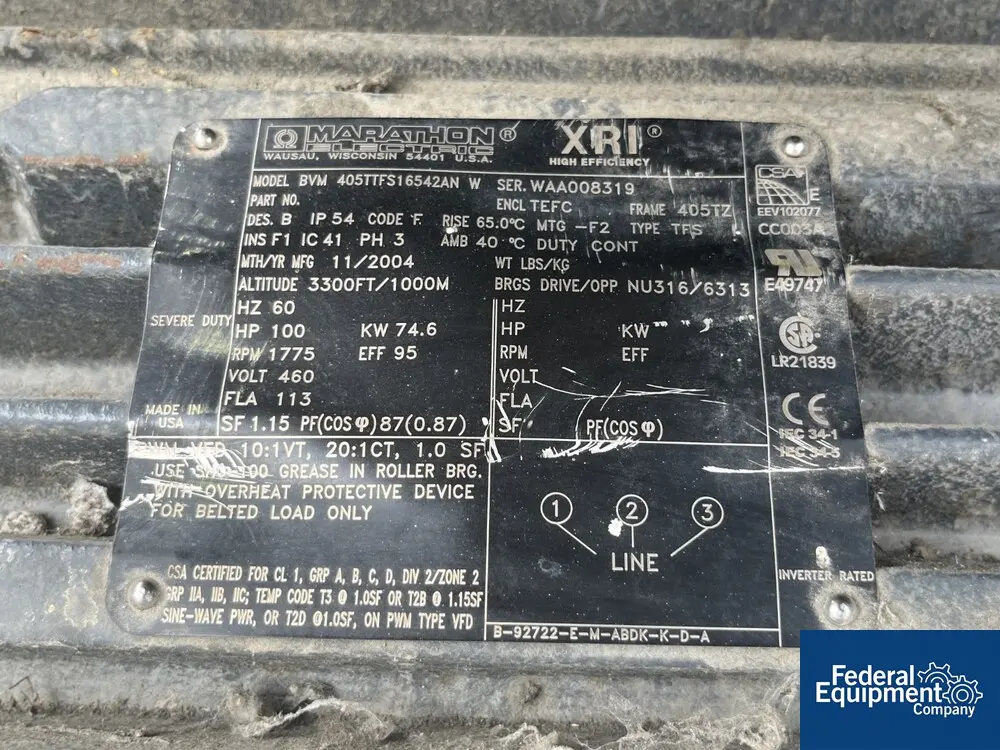 Kaeser Compressors #FB350, Rotary Lobe Blower, 100 HP, 460 V, 2004 Manufacturer: Kaeser Model: FB350 Year: 2004 Stock # 4327-4 Request a Quote 8 For Sale by Federal Equipment Company Surplus Record Dealer Since 1965 Contact Seller Cleveland, OH Sales or Contact Rep. 866-74...> Show Seller's Phone Number 866-740-5490 Let the seller know you found their listing on Surplus Record! View More Federal Equipment Company 's ListingsDescription Used Kaeser rotary lobe blower, model FB350C, with 100 hp, 460 volt motor, mat# 882022.20020, emr# 2108055, serial# 1039, built 2004. Request More Information from SellerGet Your Price from Federal Equipment Company! "*" indicates required fieldsName*Company*Email* PhoneZip / Postal Code*QuestionMake an OfferRequests Send me a shipping quote I am interested in financingSend Copy Email me a confirmation of this inquiryBuyer Protection Use our partner Escrow.com to buy or sell equipment safelyBuyer Protection Send me info about buyer protectionThis field is hidden when viewing the formDealer Email Buyers Who Viewed This Listing Also Viewed … Howden Roots #721-DVJ-TR-PL6, imp rotary lobe blower, 899060TR, 2018Category: Rotary-Positive BlowersSeller: Equipment Recovery CorpLocation: Willoughby, OH Mfr: Howden RootsModel: 721-DVJ-TR-PL6Year: 2018 Kaeser Omega #FB790C, centrifugal blower with full enclosure Plus package, brand newCategory: Rotary-Positive BlowersSeller: Formation On-Site LlcLocation: Indianapolis, IN Mfr: KaeserModel: FB790CYear: 2023 Holmes #HR80, Bi-Lobe Roots Type Positive Displacement Blower. S/N 7205860Category: Rotary-Positive BlowersSeller: Lenmark IndustriesLocation: Langley, BC Mfr: HolmesModel: HR80SKU: 120461, Model: HR80, Condition: Used, S/N: 7205860. MAC #820-4500, Blower Package, Motor, Stand, Motor Sheave & Drive Guard Only, Blower Removed, 100 HP, 1760 RPM, 230/460 VCategory: Rotary-Positive BlowersSeller: Cooper Industries LlcLocation: Millwood, WV Mfr: MacModel: 820-4500ITEM 1479: 100 HP GARDNER-DENVER MAC SUTORBILT BLOWER PACKAGE, MODEL 820-4500. MAC BLOWER PACKAGE MODEL 560PKG, SERIAL NUMBER 99-PDBH-06-043, WITH 4500 SUTORBILT SERIES BI-LOBE ROTARY POSITIVE DISPLACEMENT BLOWER MODEL GDHCECA, CATALOG #820-4500, S/N S289259, 2100 RPM, WITH SILENCER AND INLET FILTER. Approximate ...more Gast, Blower, 0.33 HP, 3450 RPM, 208-230/460 VCategory: Rotary-Positive BlowersSeller: GenemcoLocation: Hearne, TX Mfr: GastGast Blower. S/N: 0785. Motor, 1/3 hp, 3450 rpm, 208-230/460 V, 1.2-1.2/0.6 amps, 60 Hz, 3 phase. Inlets/outlets: (2) 1-1/2 in. dia. Overall dimensions: 9-1/2 in. L x 8-1/2 in. W x 9-1/2 in. H.Share × "*" indicates required fieldsYour Name*Your Email* Recipient's Email* Note to Recipient