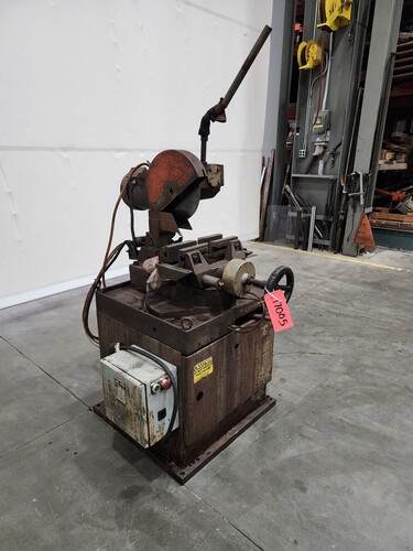 High Speed Automatic Circular Cutoff Saw, Maximum blade diameter 14" - 350 MM, Spindle RPM 3,600, Maximum vise opening 8", Automatic feed lengths (1 index) 0 to 20", Infinite with multiple index feeding, Motor 3 HP, Cut capacities, Round 90 degrees 4.75", 45 degrees (L) 4.5", 45 degrees (R) 4.5", 45 degrees vertical ...more