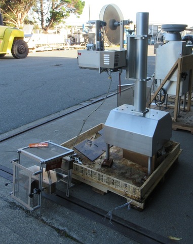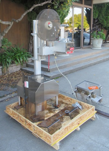 Stainless Steel Neck Bander, manufactured by Kalish, type Mini Bandit, model # 5415, serial # 0049, order # 32559. Unit currently set for 84 mm caps. Includes rotary wheel to create two lines of perforations for "easy tear" area. Also includes heat tunnel for shrinking of bands onto bottles/caps. Complete with Mini Bandit controller. New in 2007. Driven by 120V, 1/60Hz motor. Previously used in pharmaceutical operation and in very good condition.