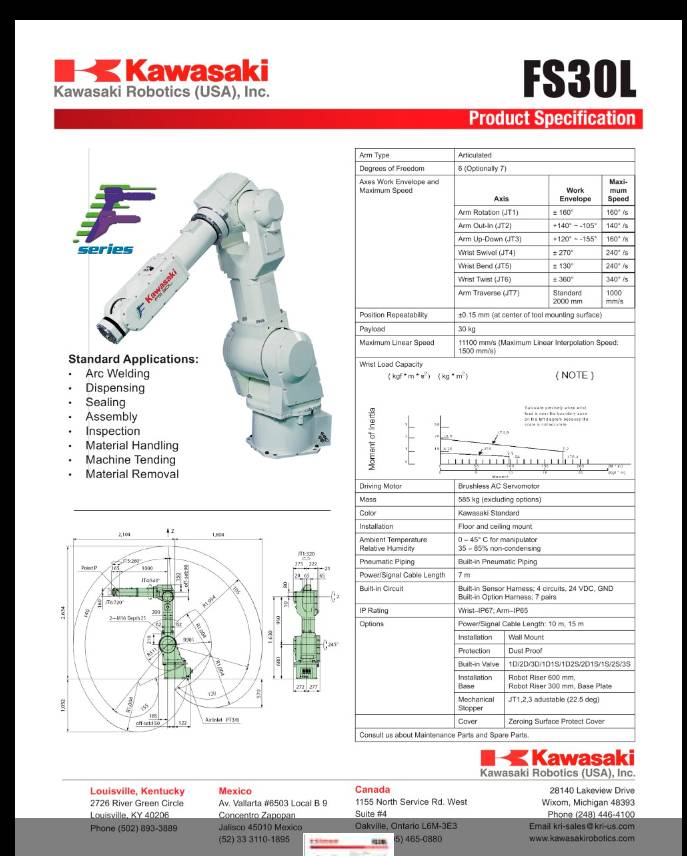 Kawasaki, RS010NA, robotic arm, 6-Axis, 2019