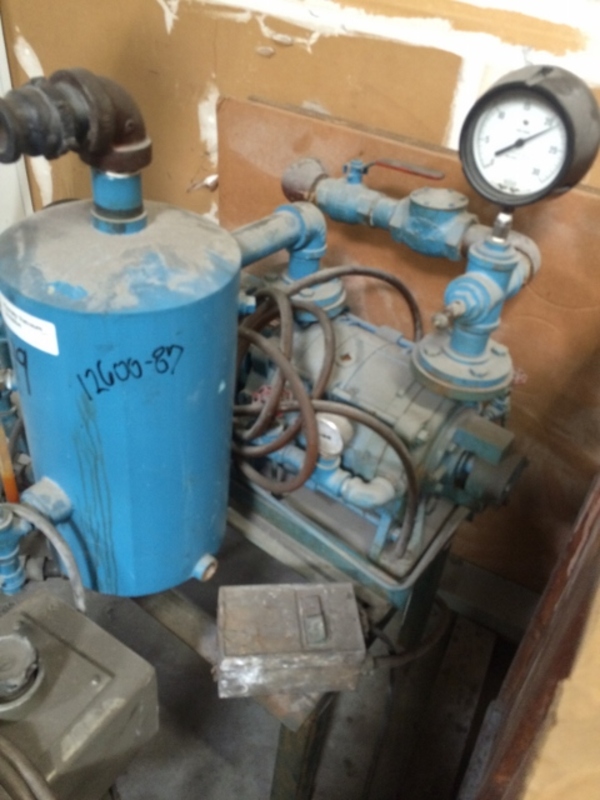 Used Kinney Liquid Ring Vacuum Pump, Driven by a 5 hp motor 208/220 volts, KINNEY 5 HP, Motor Power. 5 hp.