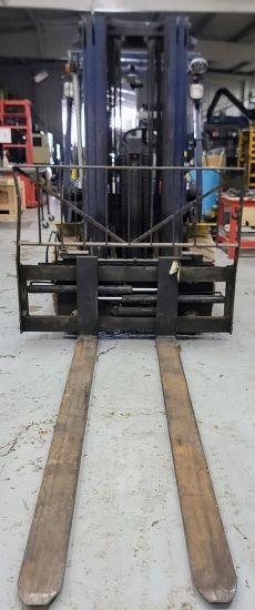 FILE PHOTO REFLECTING APPEARANCE OF THIS FORKLIFT. THIS UNIT IS CURRENTLY UNDERGOING RECONDITIONING, 7500# ELECTRIC SIT DOWN,SINGLE PEDAL, SOLID SE DRIVES, SOLID SE STEERS, SPEED LIMIT 6MPH, 217/104 TRIPLEX, 6 ROLLER CARRIAGE, HANG ON SIDESHIFTER, 2X5X48" FORKS, LOAD BACKREST, REAR VIEW MIRROR, HEIGHT ADJ STEERING ...more
