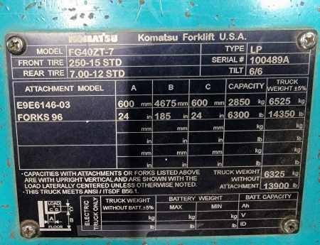 KOMATSU (USED) MODEL FG40ZT-7 LP FORKLIFT