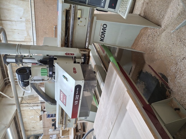 Maggi Model Evolution 1000R CNC Machining Center Workpiece Dimensions: Min/Max (mm) X 300/10,000 mm Y 75/1000 mm (With grooving saw min. 120 mm) Z 8/60 mm Drilling Configuration: 11 Vertical Drills 6 Horizontal Drills (All on 32 mm Centers) 1 Saw Blade Router: (1) 3.6 kW Electrospindle, 18,000 RPM Grooving Saw X-Axis ...more