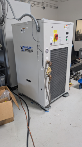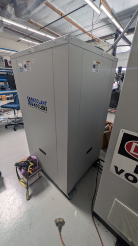 Koolant Koolers KV10000 Chiller, Inventory # 9036-C, Model: KV10000, S/N: 22903, Mechanical :, Dimensions: 50″ x 38″ x 65″ H, New Model Replacement Cost: $15,595.00, FOB Our Baltimore, MD Warehouse, Please Note: This Machine is Missing a Back Panel, Related.