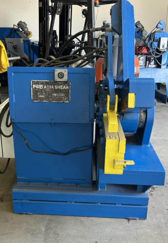 16" KRB #A114, hydraulic alligator shear, 15 HP, 15-50 SPM, feed table, hydraulic hold down clamp