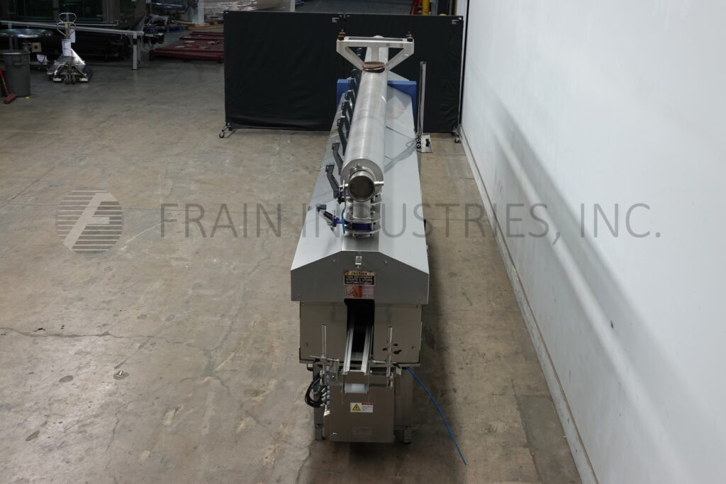 Krones, Model 4000, Stainless steel, steam shrink tunnel with number of product per minute and hour – depending on materials and application. Capable of handling round, square, oval and other irregularly shaped containers. Equipped with (4) zone, 4" wide x 10½" high aperature with 178" long tunnel, has (11) steam control valves and guages, (8) sets of (20) steam nozzles individually controlled by shut off valves and (1) 6½" exhaust port on top of the steam manifold. Mounted on stainless steel frame.