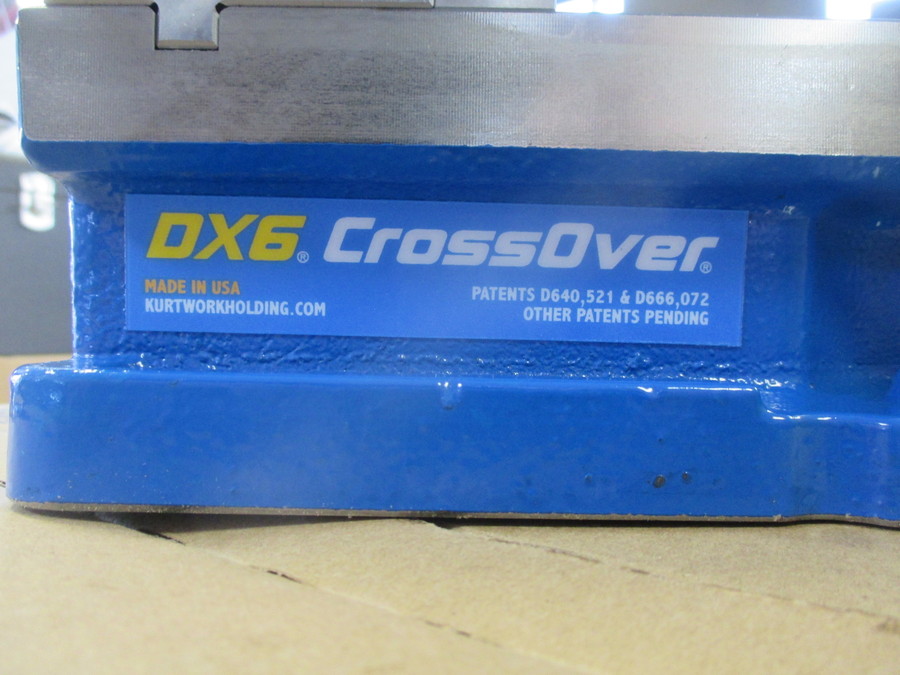 This is Kurt's DX6 CrossOver 6" Vise that combines all the great features of their D688 and 3600V Vise's. Along with new state-of-the-art workholding features, the DX6 vise achieves new levels in precision and performance where flatness and parallelism are important. By every measure this is a better vise than their D688 Vise. It features the same bed height and keyway to the stationary jaw face as the D688 and a redesigned nut with lighter weight and new brush seal design. The bearing pack is larger, stronger and more durable than their other designs and their proprietary Anglock spherical segment creates all-directional alignment and reduces jaw tilt for improved performance. With a 9" opening and a vise width of 7.391", you can get more vise's on your table than ever before, in addition it can be mounted on your table thru the body, no side flanges! A D50-4-SA Swivel Base is also available. Buy it on our website and receive a 10% discount, use Promo Code SURPLUS RECORD. We buy them by the pallet load and stock other new & used 6" styles and 8" size vises as well. In addition we stock all the replacement jaws and more!, check out our website for details!