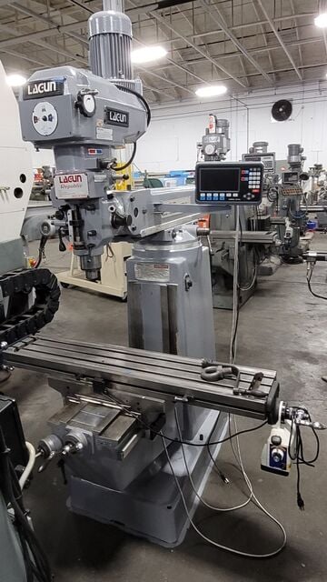 Lagun / Republic-Lagun #FTV-2, vertical mill, 10" x50"tbl., 3 HP, 38" X, 16" Y, 16" Z, R-8, 4250 RPM, new digital read out, X-Axis power feed Manufacturer: Republic-Lagun Model: FTV-2 Table: 10.00 - 50.00 HP: 3.0 Stock # 1470 Price: $6,750 USD Request Info 10 For Sale by Machinery Central Surplus Record Dealer Since 2020 Contact Seller Louisville, KY Denis Frankenberger 502-21...> Show Seller's Phone Number 502-219-7311 Let the seller know you found their listing on Surplus Record! View More Machinery Central 's ListingsDescription Description:Used Lagun/Republic FTV-2 Vertical Mill with 3HP motor, new DRO, and X Axis Power Feed. Features a 10" x 50" table, 37.99" long travel, and 15.98" cross travel. Taper R-8, variable speed up to 4,250 RPM. Includes internal coolant system and one shot lube.Spec Sheet:Lagun/Republic #FTV-2 Vertical MillX Axis Power FeedNew DROS/N SE-39490Variable Speed10 x 50 power feed tableOne Shot LubeInternal Coolant System50 x 10 T-slotted table,3HP,Table size- 55.25 x 10 (1,403 x 254 mm)T-slots- 3 on 2.51 centers (3 on 64 mm)T-slot size- 0.63 (16 mm)Maximum weight on table- 750 lbs. (340 kg) evenly distributedTravelsTable travel X-axis, manual/ with power feed- 37.99 / 34.64 (965 / 880 mm)Cross travel, Y axis- 15.98 (406 mm)Knee travel, Z axis- 15.98 (406 mm)Ram travel- 22.44 (570 mm)Head- ElectronMain motor- 3 HPMechanical infinite variable speed with (High-Low) manual settings55 to 4,250 RPM. Low (55 to 490 RPM) High (490 to 4,250 RPM).Head swivel (Left to right)- +/- 90Head tilt (Front to back)- +/- 45Distance, spindle to column-5 to 26.96 (127 to 685 mm)Distance, spindle to table-0 to 17.99 (0 to 457 mm)QuillPower quill feeds-.0015, .00314, .00511 in./rev (0.04;0.08; 0.13mm/rev)Spindle taper-R-8Quill diameter-3.38 (86 mm)Quill travel-5 (127 mm) Request More Information from SellerInquire Further with Machinery Central! "*" indicates required fieldsName*Company*Email* PhoneZip / Postal Code*QuestionMake an OfferRequests Send me a shipping quote I am interested in financingSend Copy Email me a confirmation of this inquiryBuyer Protection Use our partner Escrow.com to buy or sell equipment safelyBuyer Protection Send me info about buyer protectionThis field is hidden when viewing the formDealer Email Buyers Who Viewed This Listing Also Viewed …JUST ADDED! Republic-Lagun #FTV-2, Vertical Milling Machine w/DRO, 9" x 48" table, 34.6" x 16" x 16" travel, 22-3/16" adjCategory: Bed and Knee Milling Machines - Vertic...Seller: Norman Machine Tool LtdLocation: Baltimore, MD Mfr: Republic-LagunModel: FTV-2Republic Lagun 9″ x 48″ Variable Speed Vertical Milling Machine, FTV-2, Inventory # 10061, Model: FTV-2, S/N: 45676, Table Size: 9″ x 48″, Max. Weight of Workpiece: 441 lbs., X-Axis: 34.62″, Y-Axis: 16″, W-Axis: 16″ (Vertical Knee), Z-Axis: 5″, Distance from Spindle ...moreJUST ADDED! Republic-Lagun #FTV-2, Vertical Milling Machine w/DRO, 9" x 48" table, 34.6" x 16" x 16" travel, 22-3/16" adj, 3 HP, 230/460 V.Category: Bed and Knee Milling Machines - Vertic...Seller: Norman Machine Tool LtdLocation: Baltimore, MD Mfr: Republic-LagunModel: FTV-2Republic Lagun 9″ x 48″ Variable Speed Vertical Milling Machine with Digital Readout, FTV-2, Inventory # 10010, Model: FTV-2, S/N: 16094, Table Size: 9″ x 48″, Max. Weight of Workpiece: 441 lbs., X-Axis: 34.62″, Y-Axis: 16″, W-Axis: 16″ (Vertical Knee), Z-Axis: 5″ ...moreJUST ADDED! Chevalier #FM-3VKH, Bridgeport style manual knee mill, 10" x50" tbl., 3 HP, 33" X, 16" Y, 15" Z, 60-4500 RPM, Anilam Wizard 111 digital read out, X-Axis power feed, 1999Category: Bed and Knee Milling Machines - Vertic...Seller: MD Equipment Services LLCLocation: Crooked River, OR Mfr: ChevalierModel: FM-3VKHYear: 1999Bridgeport Style Manual Knee Mill, OEM: Chevalier Machinery Inc. (Taiwan), Model No.: FM-3VKH, Year (circa): 1999, Electrics: 230-460 Volt, 3 Phase, 60 Cycle, 8.1-4.0 Amps, Main Spindle: 3 HP, 1720 RPM, s and :,.DRO: Anilam Wizard 111,.X-Axis Power Feed, …Table Size: 50" x 10", …Travels ...moreJUST ADDED! Acer #Ultima-EVS-3VKH, vertical mill, 10" x50" tbl., 3 HP, 34" X, 16" Y, 20" Z, R8, 60-4200 RPM, 1999Category: Bed and Knee Milling Machines - Vertic...Seller: C.W. Wood Machinery IncLocation: Cincinnati, OH Mfr: AcerModel: ULTIMA-EVS-3VKHYear: 1999ACER VERTICAL MILLING MACHINE, MODEL: E-Mill EVS-3VKH, SERIAL NUMBER: 99010079, Table Size: 10" x 50", Longitudinal Travel: 34", Cross Travel: 16", Vertical Knee Travel: 16", Ram Travel: 20", Maximum Weight Of Workpiece: 850 Lbs., Turret Rotation: 360 Degrees, Spindle Speeds, Variable: 60 to 4200 RPM, Spindle Taper: ...more Acer #EVS-3VK, vertical mill, 10" x50"tbl., 3 HP, 34" X, 16" Y, 5" Z, variable speed, R-8, Newall Topaz 2-Axis digital read out, power table feed, 2001Category: Bed and Knee Milling Machines - Vertic...Seller: Machinery Values IncLocation: Harrison, NJ Mfr: AcerModel: EVS-3VKYear: 2001ACER VERTICAL MILLING MACHINEMODEL: E-MILL″VK, S/N: N1020162, NEW: 2001 : TABLE SIZE. 10" X 50" LONGITUDINAL TABLE TRAVEL.″4" CROSS TRAVEL. 16" QUILL TRAVEL. 5" VERTICAL KNEE TRAVEL. 16" RAM TRAVEL. 20" INFINITELY VARIABLE SPEED RANGE. 60-4,500 RPM SPINDLE TAPER. R-8 ...moreShare × "*" indicates required fieldsYour Name*Your Email* Recipient's Email* Note to Recipient
