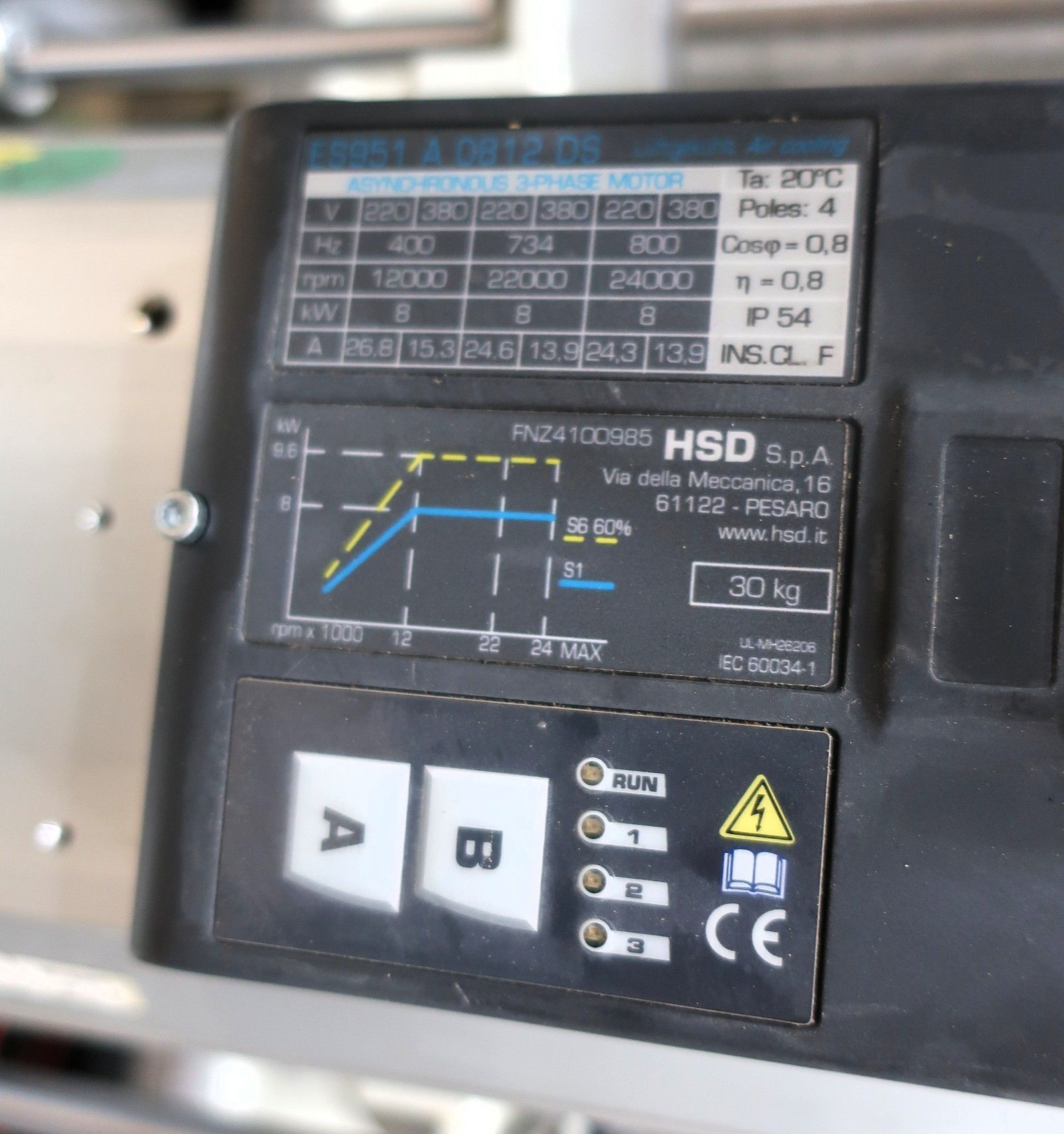 12 HP HSD (Italian) Electrospindle ISO-30 (ATC), 6,000 24,000 RPM Range, Ceramic Spindle Bearings