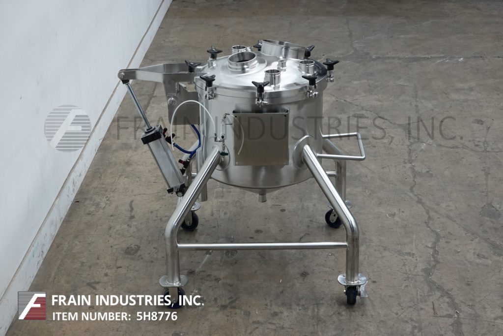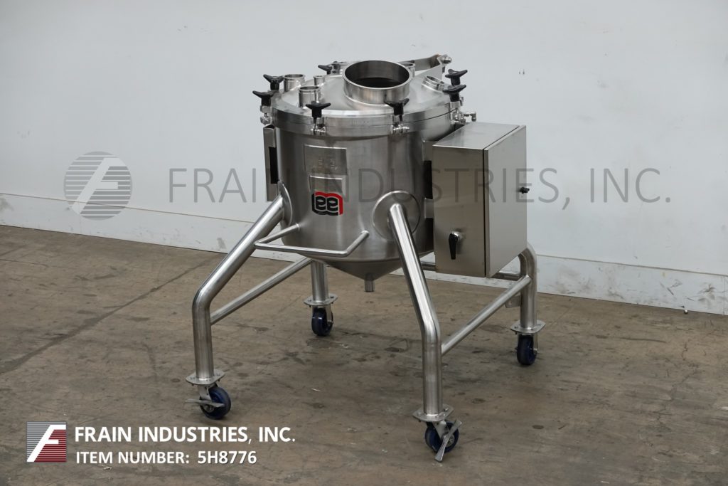 55 gallon Lee #55CBT, 316 Stainless Steel single wall vacuum tank reactor, 5 psi Manufacturer: Lee Model: 55CBT Gallons: 55.00 Pounds per Square Inch: 5 Stock # 5H8776 Request a Quote 5 For Sale by Frain Industries Surplus Record Dealer Since 1991 Contact Seller Carol Stream, IL Katie Frain 630-62...> Show Seller's Phone Number 630-629-9900 Let the seller know you found their listing on Surplus Record! View More Frain Industries ' ListingsDescriptionLee, Model 55 CBT, 55 Gallon capacity, 316 stainless steel, single wall vacuum tank. Equipped with 28" ID x 28" deep vessel with 21" straight wall and has pneumatic tilt up cover. Cone bottom has 2"OD / 1½"ID tri-clamp style discharge with 17" ground clearance. Mounted on (4) stainless steel legs with casters.Top Ports:(1) 10½"OD / 9¾" ID Tri-Clamp(1) 6½"OD / 5¾" ID Tri-Clamp(3) 3½"OD / 3" ID Tri-Clamp(2) 2"OD / ¾" ID Tri-ClampMAWP: 5 PSI / FV @ 227°F (Vessel)MDMT: -20°F @ 5 PSI / FVOAD: 55"L x 50"W x 55"H Request More Information from SellerGet Your Price from Frain Industries! "*" indicates required fieldsName*Company*Email* PhoneZip / Postal Code*QuestionMake an OfferRequests Send me a shipping quote I am interested in financingSend Copy Email me a confirmation of this inquiryBuyer Protection Use our partner Escrow.com to buy or sell equipment safelyBuyer Protection Send me info about buyer protectionThis field is hidden when viewing the formDealer Email Buyers Who Viewed This Listing Also Viewed … 50 gallon Pfaudler, Glass-Lined Reactor, Stainless Steel, dish top, 50 psi internal, 150 psi jacket, 66" wet, 4015 glass steel lining, 2009Category: ReactorsSeller: Federal Equipment CompanyLocation: Cleveland, OHYear: 2009Used 50 gallon Pfaudler glass lined reactor body, model RX24-50, 316L stainless steel glass lined body, 316L stainless steel removal dish top, rated 50 psi and full vacuum at 450 f, jacketed for 150 psi and full vacuum at 450 f, 4015 glass steel lining, Pfaudler top serial# J081045A, national board# 52225, body ...more 50 gallon Pfaudler #RT24-50-16S-125JOW, reactor, glass lined, with condenser system, skid mounted, 2016Category: ReactorsSeller: Machinery & Equipment CoLocation: Brisbane, CA Mfr: PfaudlerModel: RT24-50-16S-125JOWYear: 2016Pfaudler 50-gallon glass-lined reactor system, skid-mounted and includes condenser, Mokon temperature control unit, and integrated control panel. The vessel is internally rated for 150 PSI / Full Vacuum at 450F and jacket rated for 125 PSI at 450F, with a minimum design metal temperature of -20F. Glass type 9115. ...more 50 gallon Precision, Reactor, Stainless Steel, 18" diameter x 42" straight side, 50 psi/FV Internal, 150 psi Jacket, 366 F, 1995Category: ReactorsSeller: HGR24Location: Euclid, OH Mfr: PrecisionYear: 1995Inventory No. 0818-050-0003 Manufacturer Precision Name Precision Reactor Arrival Date 08-20-2018 Dimensions L x W x H (inches) Unavailable Capacity 50 GALLON Weight (lb.) 2000 Category Chemical Processing Condition Used, tested Available Quantity 1 Serial No. 8929-3 Make Year 1995 Item 316l Stainless Steel ...more 50 gallon Letsche, Reactor, 304 Stainless Steel, 70 psi @ 320°F, 0.105" shell thickness, 1984Category: ReactorsSeller: Arlington MachineryLocation: Lake Zurich, ILYear: 1984Used 188 Liter Letsche Reactor 304 Stainless Steel S/N 1035 / 5782-24 70 PSIG Working Pressure.105 Shell Thickness SEE PHOTO OF NAMEPLATE FOR MORE. 49.7 gallon Brighton Corp., Stainless Steel vertical reactor, 20" diameter x 36" straight side, 25/FV psi @ 250°F Internal & JacketCategory: ReactorsSeller: Aaron Equipment CoLocation: Schaumburg, IL Mfr: Brightonused- brighton corporation reactor, 49.7 gallon. 316l stainless steel, vertical. 20" diameter x 36" straight side. removable top dished head, dished bottom. internal rated 25 psi and full vacuum at 250 degrees f. 304 stainless steel dimple jacket rated 25 psi and full vacuum at 250 degrees f. openings top: (1) 4" for ...moreShare × "*" indicates required fieldsYour Name*Your Email* Recipient's Email* Note to Recipient