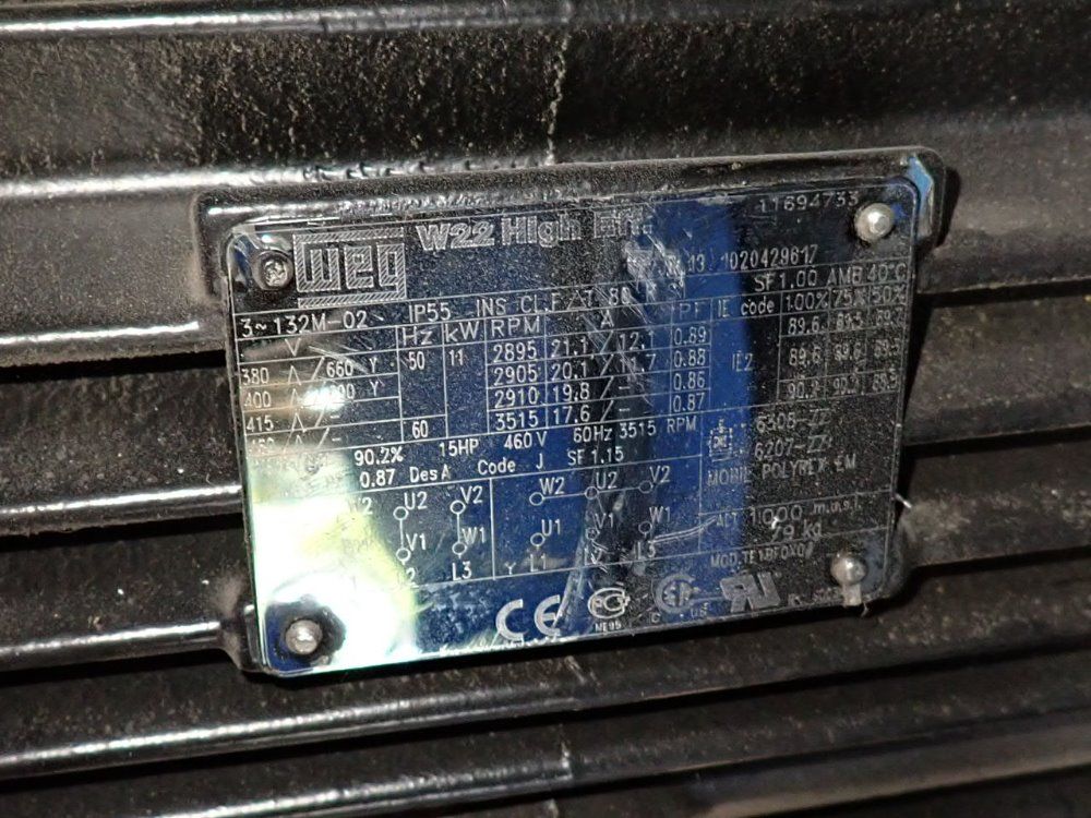 ITEM 2923: 5 HP INDUSTRIAL AIR TECHNOLOGIES FAN MODEL PB 2006 60/D 9R 90 CCW. STAINLESS STEEL, UNUSED, STAINLESS STEEL WHEEL AND HOUSING, MODEL PB 2006 60/D 9R 90 CCW, SERIAL # 63836-A, MANUFACTURED IN THE USA, 6” DIAM INLET/OUTLETS WITH 11” FLANGES, STAINLESS CONSTRUCTION UNUSED, WITH MANUAL, 5 HP WEG ...more
