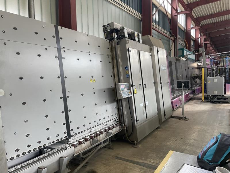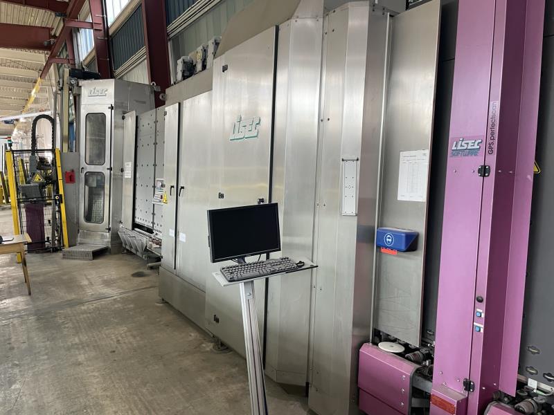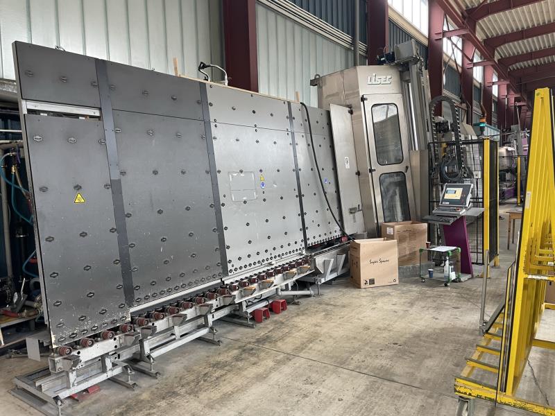 LISEC LV-20/35 VSA Automated Insulating Glass Line With SUPER SPACER - 2000 x 3500 mm Insulating Glass line for assembly of double or triple insulating glass units. The loading zone at the inlet is designed to feed the washer in a timely manner. Using a 6-brush washer and drying zone ensures cleanness of the single sheets before frame mounting and insulating glass assembly.Final visual quality checks are done at the frame mounting station. The press finalizes this automated process before manual takeoff and secondary sealing. Working direction: from Left to Right. This line is capable of doing shapes and stepped units, double and triple glass units as well as the capability of doing both flexible & rigid spacer frames. Specifications::Max. dimension: 2000 x 3500 mm (78" x 138")Min. dimension: 350 x 180 mmTotal thickness: ISO: 12 to 60 mmGlass thickness: 3 to 15 mmSZR: 12 to 18 mmGorgian Bars : NoGas type: ArgonFor double and triple units, shaped units accessing LISEC shape catalogueModels: according to the model catalog LISEC radius limit 250 mmSealant: PU Fenzi Poliver GP-SL (Polyurethane)Consists Of The Following Equipment Components: LISEC "KSR" Arrising MachineVertical compact grinding machine for the seaming of glass sheets on all four sides in a fully automatic cycle. The glass edges are ground by wet-diamond belts which simultaneously process the front and rear side of a glass edge. The grinding head moves on a vertical guide unit and can also rotate 360 degrees, allowing it to reach all four sides of a glass sheet. This grinding process achieves a perfect and gentle seaming of glass edges with the shortest cycle timesLISEC "RTVB-35/20WE" Inlet ConveyorLISEC "VHW 20/6M" Vertical Washing MachineAutomatic 6-Brush Washing and drying system for glass panes with infinitely variable adjustment of the glass thicknesses. With LOW-e capability.LISEC "GPS Perfect Scan" Quality ScannerGPS.perfectscan - the software of the LiSEC glass scanning system - inspects glass surface and body according to architectural regulations for the visual quality of glass (e.g. Austrian ÖNORM B 3738 or German Hadamar). The visual scan of the pane (see Scanning functionality) is done with high resolution. LISEC "RSVN-35/20U" Outfeed ConveyorLISEC "VSA-35/20 D1 + 4" Fully Automatic Super Spacer Applicator Robot [2011]Fully automated vertical station for the application of flexible spacer frames on glass sheets. After feeding in the glass sheet to the reference point, the auxiliary frame mounting stops automatically adjust to the bottom and front vertical glass edge. The operating height of transport is 520 mm at a 6 incline. Minimum processing height is 180 mm with a minimum processing length of 250 mm. LISEC "RTVB-11/20 ST" Inlet ConveyorLISEC "RAL" – Automatic Frame ApplicatorLISEC "RSV" – Manual Frame Mounting StationLISEC "SSV-20" Automated Corner Tape Application System for Flexible Spacers + Optional Special ShapesSystem for sealing the final cor