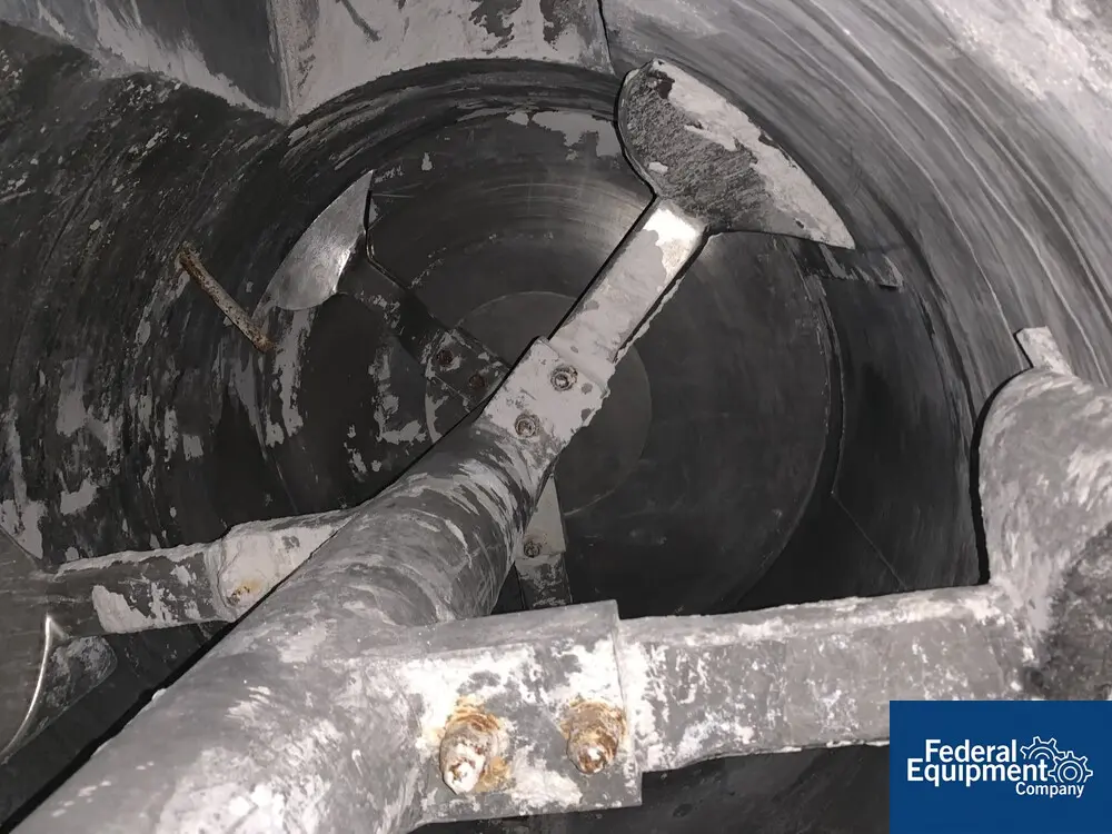 Used 75HP WAMGroup WBH Batch-Type Horizontal Plow Mixer - 94 cu/ft, Heavy-duty round body mixing chamber with a 42" X 117" length using rolled 5/16"thk. C.S., Mixing chamber internals installed with stainless steel expanded metal wear lining throughout, Multiple plows are coated with anti-wear surface ...more
