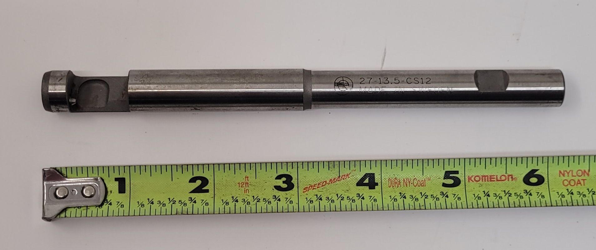 Discover the MAG 27-13.5-CS12 Spindle by MAG CINCINNATI. This used tooling accessory, part number M.1006.7719, offers a compact design with an OAL of 6.25", shank diameter of 11.8mm, and shank length of 3". Ideal for precision needs.