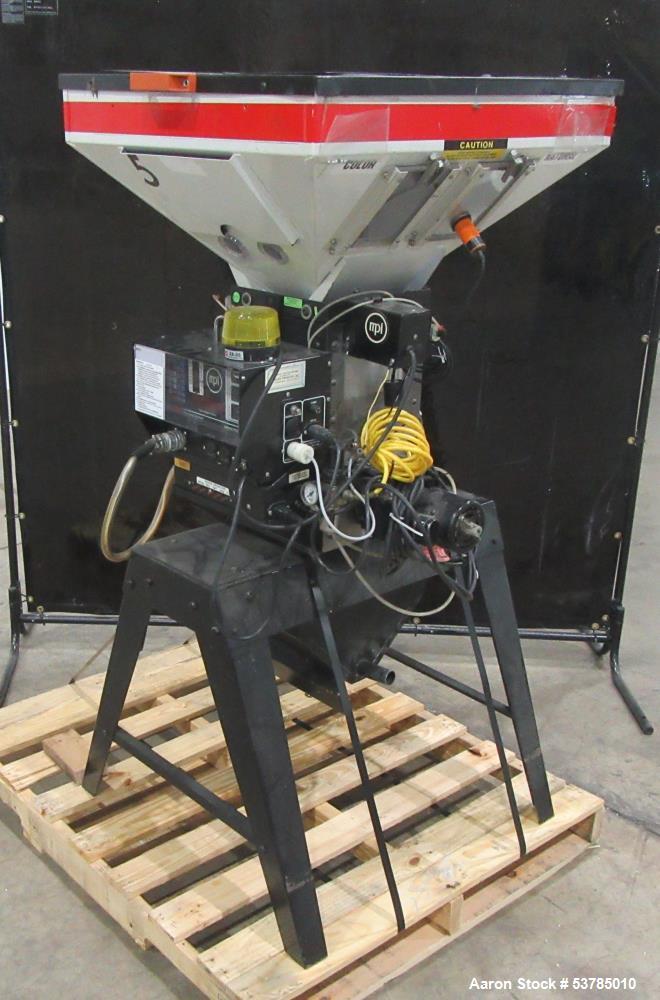 used- maguire products model wsb-140 gravimetric batch blender. maximum throughput 450 lbs per hour (204 kg/hr). batch size 2.2 lbs (1000 grams). bin capacity main & minor 1.0 cubic feet ( 28.3 liter). maximum number of materials 4. 4 discharge valves. 4 bin compartments. mounted on frame. serial# b111359.
