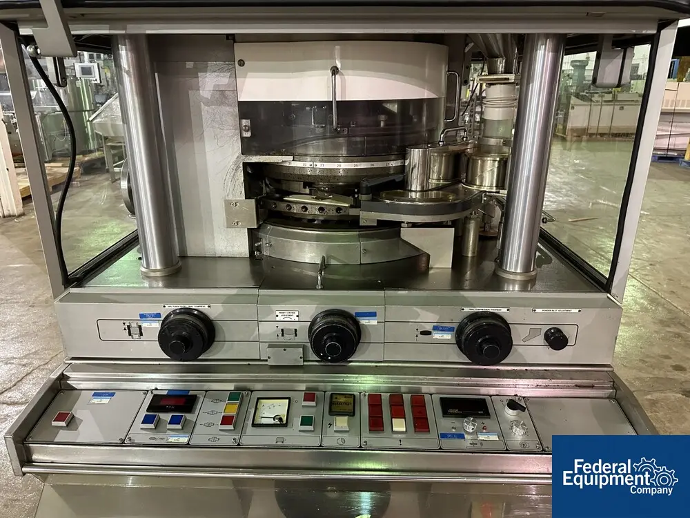 6.5 Ton, Manesty, Tablet Press, 33 Stations, 7/16" tablet diameter, 11/16" Depth of Fill, 180000 Tablets/hr.