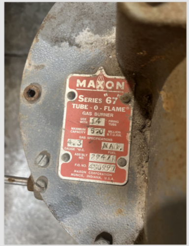 Maxon Series “67” Tube-O-Flame 14” Gas Burner w/ Combustion Air Blower 5.0 Million BTU’s