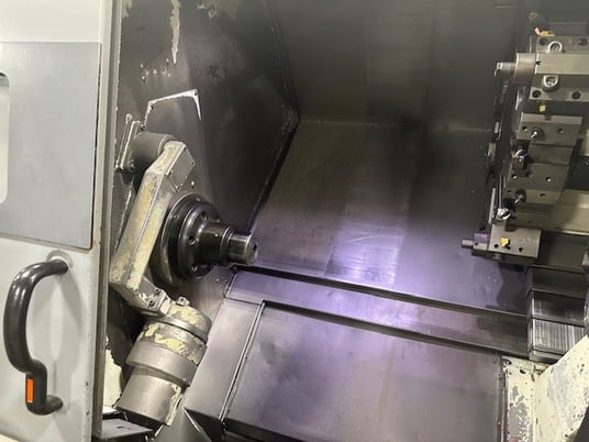 2005 MAZAK QTN 200MS, Swing. 26.4", Machining Length. 22.7", Max. Turning Length. 14.75", Max. Turning Diameter. 13.78", Center Distance. 21.28", X-Axis. 9.05", Z-Axis. 22.75", Chuck Size. 8", Bar Capacity. 2.56", Spindle Nose. A2-6, Power. 35 hp, Max RPM. 5,000 RPM, Turret Stations. 12, Live Tooling. Yes, Live ...more