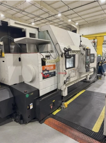 29.5” X 22.8” Two Axis CNC Turning Center with Mazatrol Matrix Nexus CNC Control, 50 HP Spindle Motor, 12 Station Block Style Turret, Tail Stock, Collet Chuck, 3 - Jaw Chuck, Tool Setter, Automatic Tool Eye, Sequence Number Comparison STO Function, Y - Axis Control, Overload Detection System, Re-Threading ...more