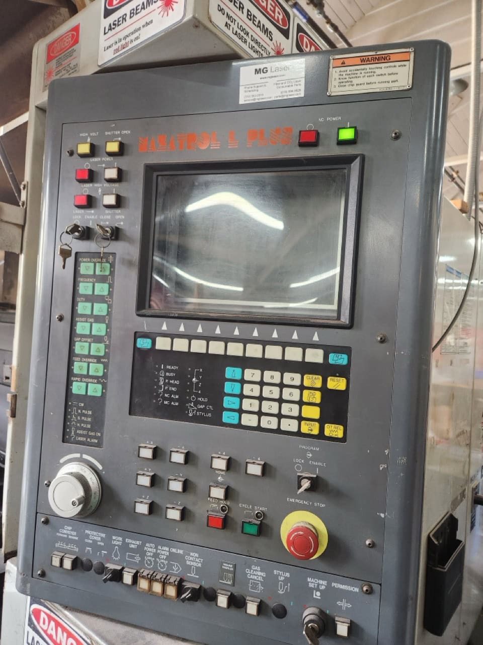 CAPACITY:, Rated Laser Output: 2500 Watts, Maximum Work Piece Size: 49.2" x 49.2", X-Axis Stroke: 50", Y-Axis Stroke: 50", Z-Axis Stroke: 16.5", A-Axis Stroke: +/- 360 Deg., B-Axis Stroke: +/- 135 Deg., Mazak/Fanuc L64 Series CNC Control, 2500 Watt Panasonic Resonator, 6-Axis Non-Contact Cutting Head, Rotary Axis for ...more