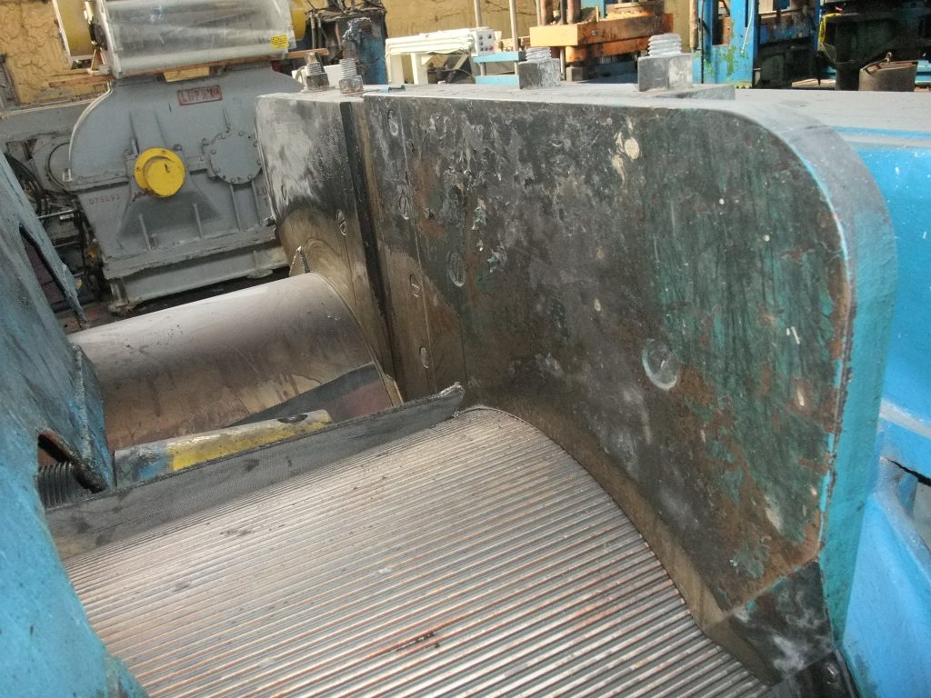 Used 34" Cincinnati Milacron two roll sheet stack, 18" diameter x 34" roll face width rolls, vertical stack orientation, chromed and cored rolls with rotary unions, silent chain driven with 5 hp, 1750 dc motor thru Koellman gearbox with 18.131:1 ratio, scr motor controller, pull roll stand with 4" diameter x 34" wide ...more