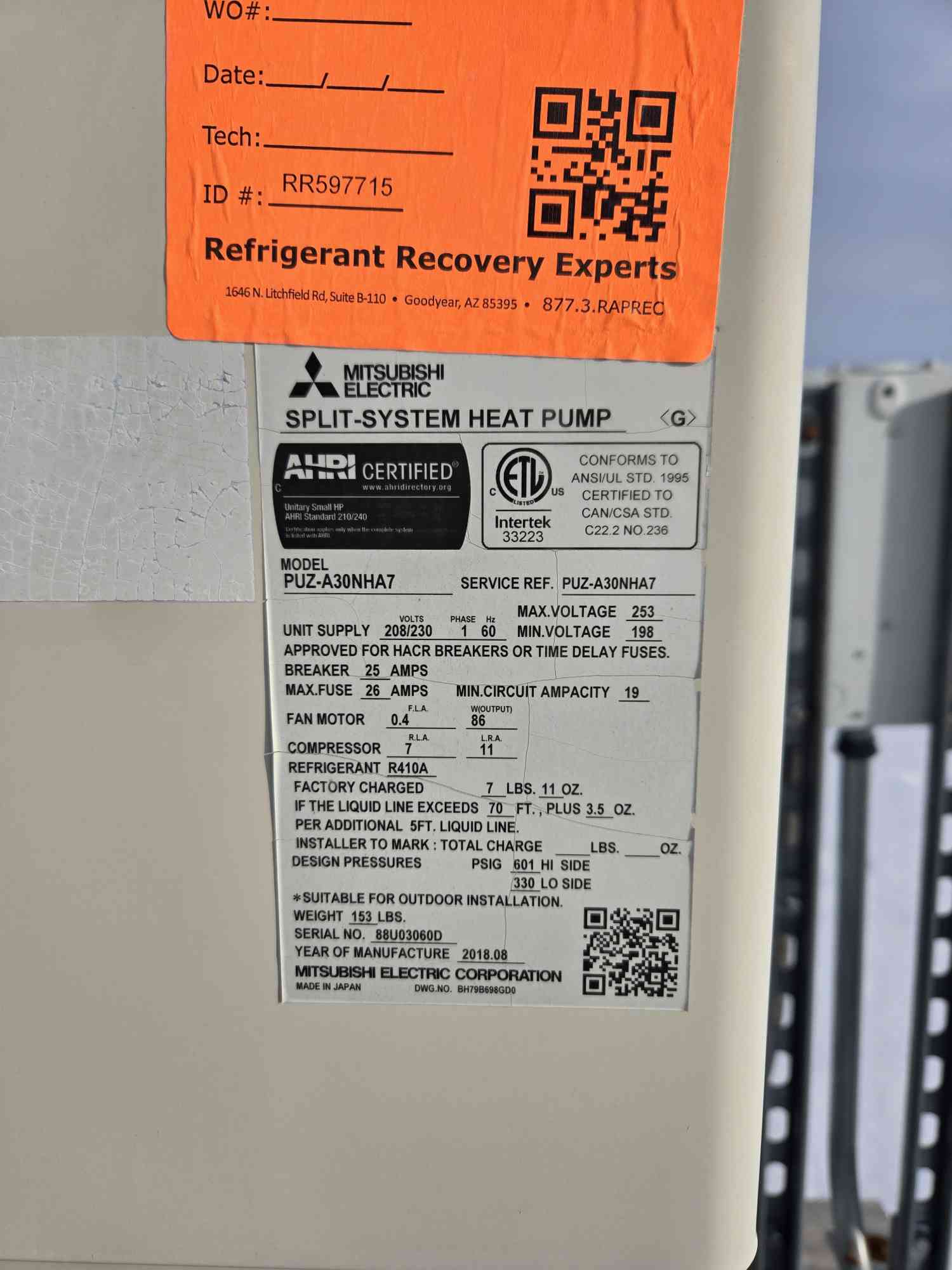 2.5 Tons Roof top split system heat pumps
