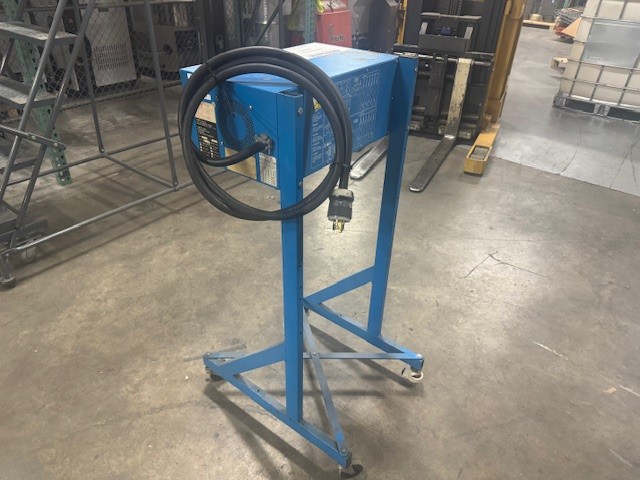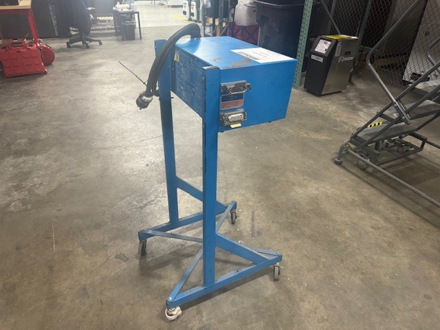 Used MGB Model SC12 slide plate screen changer having (2) nominal 12" diameter breaker plates. Unit is mounted on stand with casters supplying approximately 42" discharge height. Package includes a 10 hp Power Motion hydraulic power pack with (4) high pressure accumulators. Job #1700. Serial #SC12-0697-156., MGB SC12.