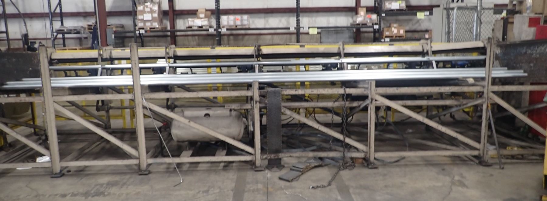 Modern 3L Tube Cutoff System, STOCK# 13390J, MDL# 3L, S/N# 3L3312, Target 65", 2 Slides, Outer diameter ;" - 3-1/8", Main drive motors 5.0 hp, RPM 1,200, Spindle Speeds 130-2,000, 15' MODERN LONG BAR COMBINATION LOADER HOPPER TABLE, Double Cross Slide, Roller feed, Automatic oil lubrication of main spindle ...more