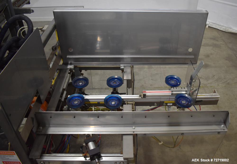 OK International Model Duraformer 2, case erector / bottom taper. Case size range: 7" to 20" in Length; 6" to 16" in Width; 4" to 16" in Height. 60" blank case magazine, Tri-Grip pneumatic erector arm, reciprocating vacuum suction cup pic-n-place and squaring device, 2" bottom ...more