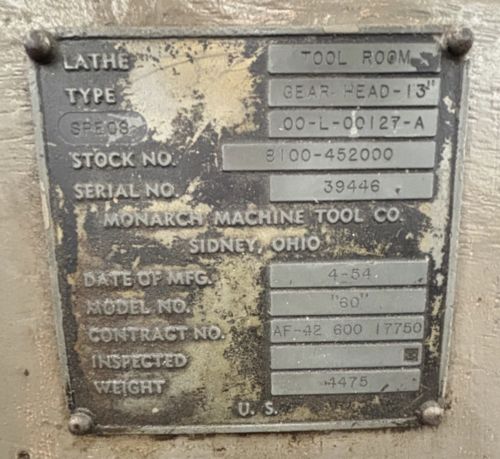 Monarch #60, Tool Room Lathe, 1954 Manufacturer: Monarch Model: 60 Year: 1954 Stock # 012277 Request a Quote 5 For Sale by Carolina Machinery Sales Surplus Record Dealer Since 2021 Contact Seller Monroe, NC Ralph Viegelmann 704-28...> Show Seller's Phone Number 704-288-1904 Let the seller know you found their listing on Surplus Record! View More Carolina Machinery Sales ' ListingsDescription Monarch Tool Room LatheGear Head - 13"Model No. "60"Serial No. 30446Year 4/1954 Request More Information from SellerGet Your Price from Carolina Machinery Sales! "*" indicates required fieldsName*Company*Email* PhoneZip / Postal Code*QuestionMake an OfferRequests Send me a shipping quote I am interested in financingSend Copy Email me a confirmation of this inquiryBuyer Protection Use our partner Escrow.com to buy or sell equipment safelyBuyer Protection Send me info about buyer protectionThis field is hidden when viewing the formDealer Email Buyers Who Viewed This Listing Also Viewed … 20.5" x 54" Monarch #60, engine lathe, 10" chk, 6-jaw, 1-5/8" spindle bore, quick change tool post, Steady RestCategory: Engine LathesSeller: Machinery CentralLocation: Louisville, KY Mfr: MonarchModel: 60, Used 20.5" x 54" Monarch Model 60 Engine Lathe available. s include a 16" swing, 57" centers, and 1.5" spindle bore, with a quick change tool post and steady rest. Ideal for precision machining tasks., Spec Sheet:, 20.5" x 54" Monarch Model 60 Engine Lathe, Model 60, 20.5" Swing, 54" Between Centers, 10" 6 Jaw ...more 15.5" x 30" Monarch #60, Heavy Duty Toolroom Lathe, 24-1000 RPM, 5 HP, 220/440 V.Category: Precision and Second Operation LathesSeller: Machinery Consultants IncLocation: Salt Lake City, UT Mfr: MonarchModel: 60 Monarch #18" CBB, engine lathe with toolingCategory: Engine LathesSeller: Global Equipment InternationalLocation: Chalfont, PA Mfr: MonarchModel: 18CBBMONARCH ENGINE LATHE, MODE 18"CBB, TOOLING INCLUDED, Manufacturer MONARCH Model 18"CBB ENGINE LATHE Condition Used Stock Number 904723.097MA. Monarch, engine latheCategory: Engine LathesSeller: Universal Press & Machinery (UPM)Location: Ferndale, MI Mfr: MonarchMONARCH _UNKNOWN_, MONARCH _UNKNOWN_.JUST ADDED! Monarch #10EE, Toolroom Lathe, 5C collet chuck, variable speed control, digital read outCategory: Engine LathesSeller: S and R MachinesLocation: Bristol, CT Mfr: MonarchModel: 10EEeBay 3 jaw tool holder and more QUICK CHANGE CHANGE DRILL CHUCK LIVE CENTER, 5C COLLET CHUCK WITH 5 C WITH COLLET CHUCK SET CUTTING TOOLS WITH CARBIDE INSERTS, WE HAVE 2 INSTOCKWE ARE INSTALLING A NEW DC VARI SPEED CONTROLL, 229 SINGLE PHASE CONTROLLER UPGRADE SINGLE PHASE, shipping is just estimate, we dont know your ...moreShare × "*" indicates required fieldsYour Name*Your Email* Recipient's Email* Note to Recipient