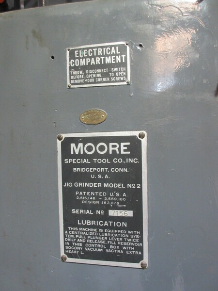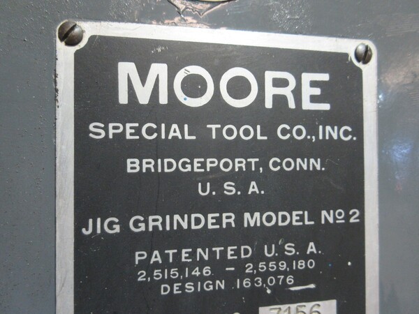 Moore #2, jig grinder, 10" x 19" table, 10-1/2" x 16-1/2" table movement, 0-120 SPM