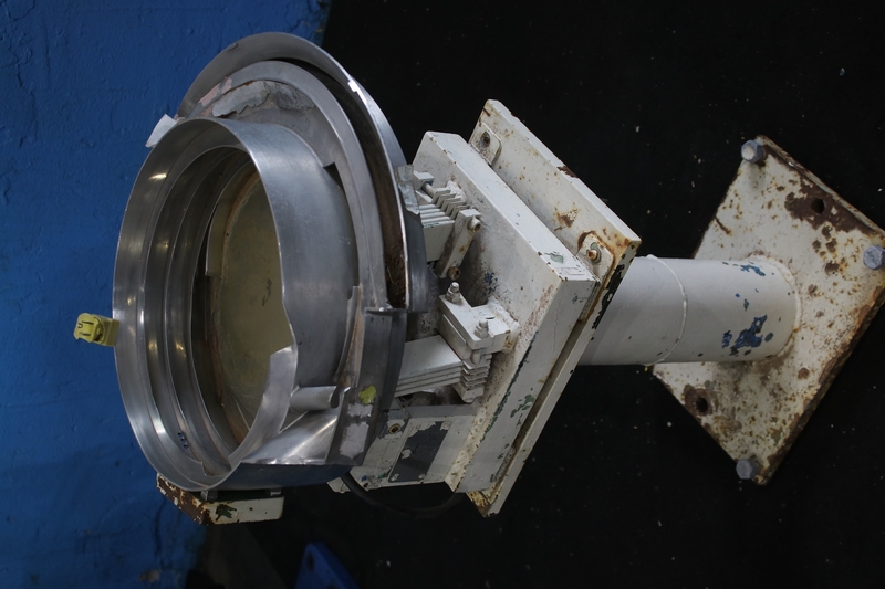 1997 Mid-West Feeder, Inc. Stainless Steel Feeder with Hopper. Capacity: 50 units per minute per line, with two lines of output from feeder bowl. Bulk storage hopper dimensions: 2 ft. L x 2 ft. W x 8 in. H. Includes Rodix control panel. Previously owned by Nestle, this machine was designed to feed marshmallow flavored ...more