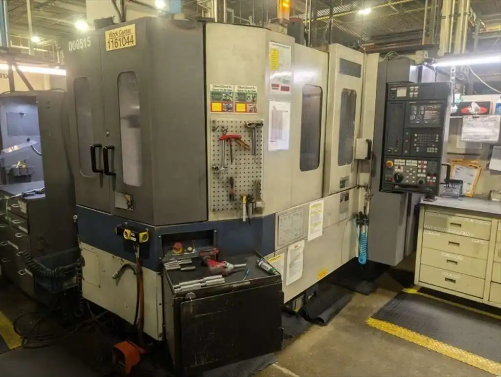 OKUMA MB4000H CNC HMC, Pallet Size 15.75″ x 15.75″, X Axis Travel 22.05″, Y Axis Travel 22.05″, Z Axis Travel 24.61″, Table Index 0.001 degree, Maximum Table Load 880 LBS, Spindle Speed 50 to 15,000 RPM, Spindle Taper # 40, Rapid Traverse Rate (X,Y,Z) 2362.20 IPM, Tool Change Capacity 110 ...more