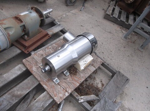 Inline Planetary Gearmotor by Stainless Motor Inc. - Manufactured with cast T304 stainless steel housing, sanitary foot mounts, and a 3 HP, 3-phase motor. Gear ratio is 3.67:1 with 1760 RPM.