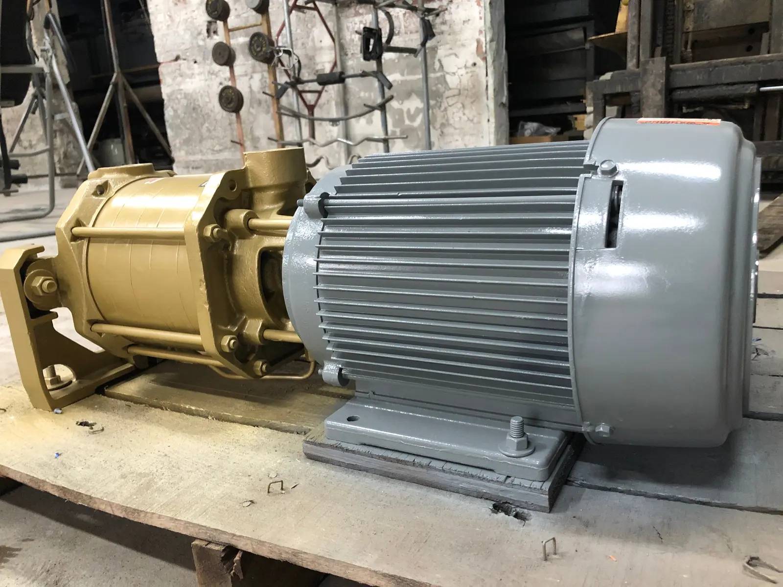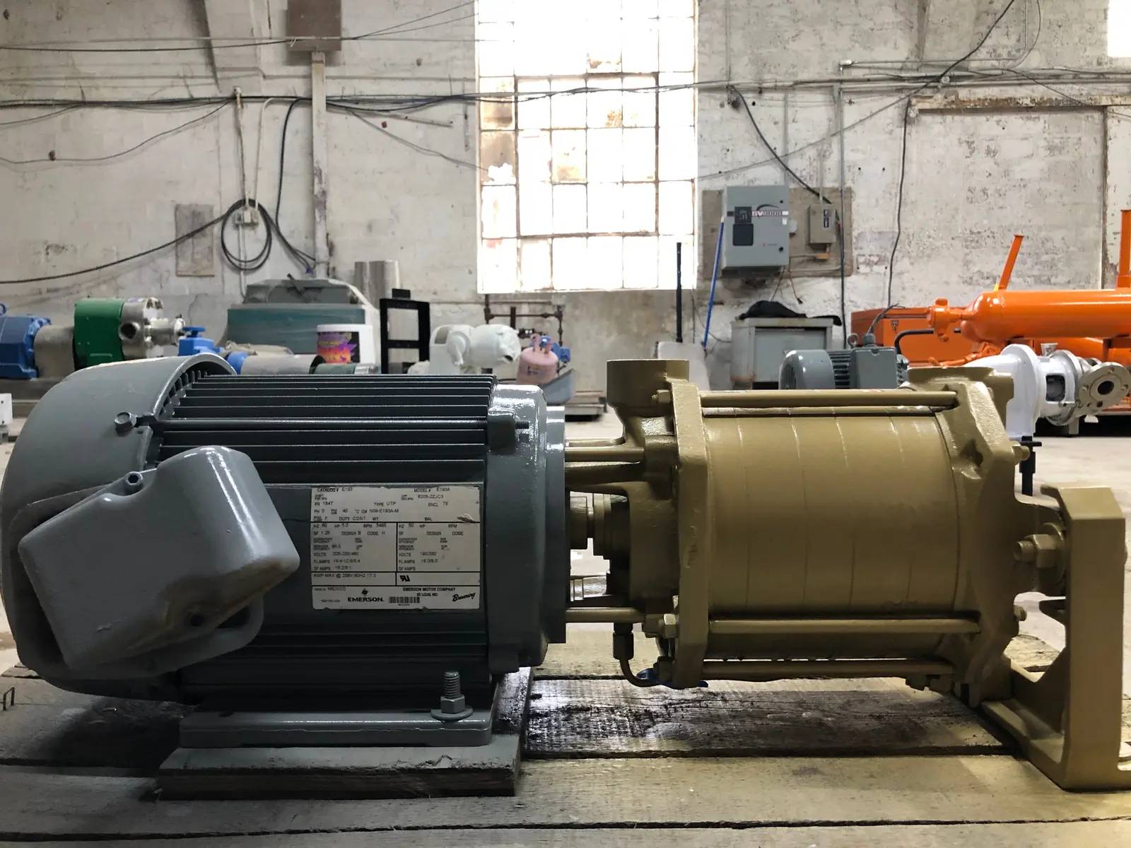 MTH Multistage Regenerative Turbine Pump - Model: L52J AL, Serial No: 12c 1489591. Horizontal Closed Coupled. Inlet and Outlet are Cast Iron has a Max Discharge Pressure of 1000 PSI @ Maximum of RPM of 3600. Standard Temperature of Pump: -20 F to 250 F. Pump and Motor has been repainted. Emerson Motor - Model: E193A, FR: 184T, PH: 3, Hz: 60, HP: 5, RPM: 3495, Volts: 208-230/460, Amps: 16.2/8.1.