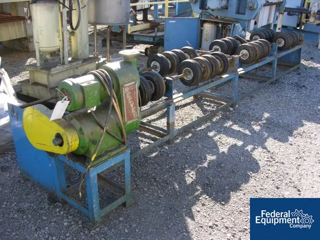 Used Multi Drum rotator, 4 drum capacity, 48" long sections, unitized base with 2 HP Reeves variable speed drive.