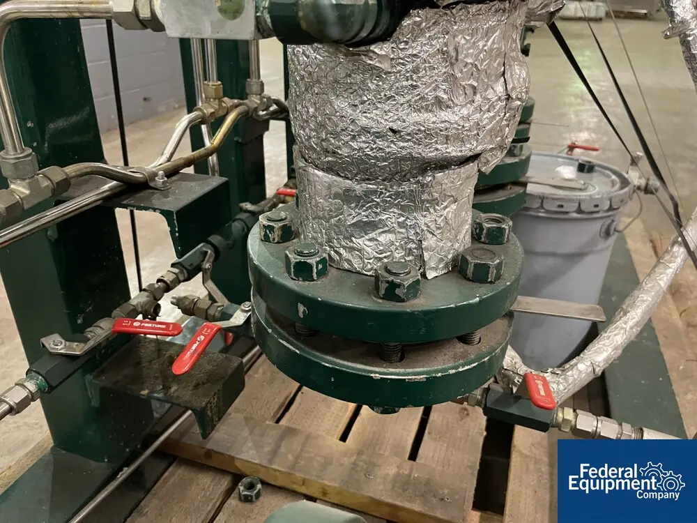 Used Multi Effect Distillation System, with (4) 4" diameter x 52" high jacketed distillation columns, skid mounted with BS&G injection pump.