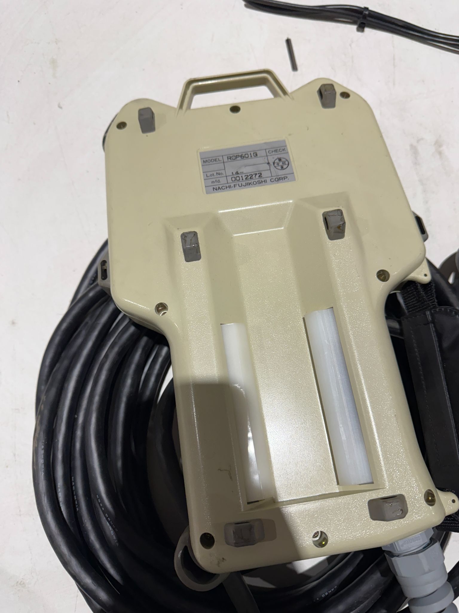 NACHI ROP601G Teach Pendant available in good used condition. Ideal for robotics applications, this durable piece enhances precision and control. Great addition for technicians seeking reliable equipment for their automation systems.