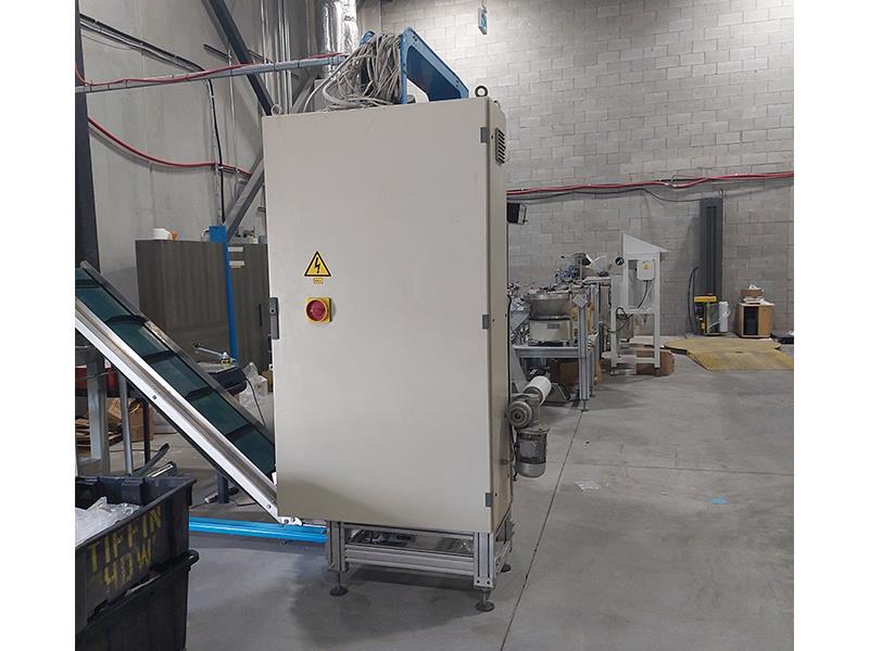 Ohlson Packaging, complete combination weigh scale, bag filling system with number of bags per minute – depending on materials and application. Line consists of Ohlson stainless steel bucket elevator with 15" long x 4½" wide x 3½" deep plastic buckets and has 26" long bottom ...more