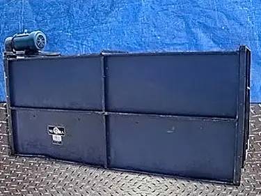 Niagara Frost Never Forms Spray Cooler/Evaporative Condenser. Model: 609. S/N: 33118. Niagara Spray Coolers are designed so that "Frost Never Forms", and can be run "Full Capacity Always". Centrifugal Fans with Reliance Electric Motor, 15 hp, 1750 rpm, 208-230/460 V, 39.8-36/18 amps, 60 Hz, 3 phase. Drive pulley diameter: 6-1/2 in. Driven pulley diameter: 25-1/2 in. Pulley ratio: 0.25. Final rpm: 446. Submersible Pump with General Electric Motor, 1 hp, 3450 rpm, 230/460 V, 3.7/1.85 amps, 60 Hz, 3 phase. Submersible Pump with Reliance Electric Motor, 1 hp, 3450 rpm, 230/460 V, 3.2/1.6 amps, 60 Hz, 3 phase. (3) Westinghouse Safety Switches. Inlets: (1) 3/4 in. no frost solution infeed port, (1) 1 in. dia. FNPT makeup port, (2) 1-1/2 in. dia. refrigerant infeed ports. Outlets: (2) 3 in. dia. refrigerant discharge ports, (1) 2 in. dia. drain port, (1) 2 in. dia. overflow drain port, (2) 2 ft. 7-1/2 in. L x 2 ft. 7 in. W vents. Overall dimensions: 12 ft. 6 in. L x 8 ft. W x 13 ft. H.