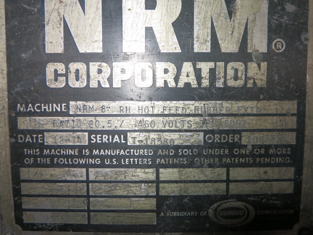8" NRM, hot feed rubber extruder, right hand feed, 20.5:1 G/B ratio, unitized base, 1974 Manufacturer: Nrm Year: 1974 Dia.of Screw: 8.00 Stock # 6181 Request a Quote 4 For Sale by Soberay & Sons Ltd Surplus Record Dealer Since 2012 Contact Seller Cleveland, OH Ryan Soberay 216-33...> Show Seller's Phone Number 216-334-2003 Let the seller know you found their listing on Surplus Record! View More Soberay & Sons Ltd 's ListingsDescription One (1) Used 8" NRM Hot Feed Extruder, right hand feed, pneumatically adjustable sheet head, GB ratio 20.5:1, unitized base, date 12-74, Order 104353, S/N T-18580 Request More Information from SellerGet Your Price from Soberay & Sons Ltd! "*" indicates required fieldsName*Company*Email* PhoneZip / Postal Code*QuestionMake an OfferRequests Send me a shipping quote I am interested in financingSend Copy Email me a confirmation of this inquiryBuyer Protection Use our partner Escrow.com to buy or sell equipment safelyBuyer Protection Send me info about buyer protectionThis field is hidden when viewing the formDealer Email Buyers Who Viewed This Listing Also Viewed … 8" x 24" Conair #CLS-824, granulator, 5 HPCategory: Extruders and Extrusion LinesSeller: Arlington MachineryLocation: Lake Zurich, IL Mfr: ConairModel: CLS-824Used 8" x 24" Conair Granulator, Model CLS824, 5 Hp With Gearbox 50" Top Feed With Part Chute 160 RPM Rotor Speed, 3*5 Rotating Knives 1/4" Screen, Airveyor Discharge S/N: RA520-565271 4 Approximate Dimensions: 5" x 62" 50" High, Not Including Chute 1,290 lbs. 8" Brabender #SFR-100-B, Chill Roll Stand Extruder, 4" diameter X 8" W Rolls, 50 HPCategory: Extruders and Extrusion LinesSeller: Federal Equipment CompanyLocation: Cleveland, OH Mfr: BrabenderModel: SFR-100-BUsed 8" Brabender Chill Roll Stand, Model SFR-100-B, with 4" diameter x 8" wide rolls middle and bottom rolls, 2.5" diameter x 8" wide bottom roll, 1/50 hp dc motor for middle roll only, on frame, serial# 597. 8" Berstorff, cold feed silicone extruder, 12:1 L/D, 250 HP, 1150 RPM, belt driveCategory: Extruders and Extrusion LinesSeller: Soberay & Sons LtdLocation: Cleveland, OH Mfr: BerstorffOne (1) Used Berstorff 8" (200mm) Cold Feed Silicone Extruder, 12:1 L/D, 250 HP, 1150 RPM, 460 VAC motor, power feed roll, straight delivery head, belt drive. 8" x 14" Conair #JC-814, granulator, 5 HP AC motor w/ starter, 21 fly knives, 2 bed knives, 45" in-feed heightCategory: Extruders and Extrusion LinesSeller: Arlington MachineryLocation: Lake Zurich, IL Mfr: ConairModel: JC-814Used 8" x 14" Conair JC-814 Granulator 5 HP AC Motor With Starter Staggered Rotor, 21 Fly Knives, 2 Bed Knives Has Bolt-On Cutter Segments With Replaceable Tips 45" In-Feed Height 6.4" Cutting Circle 600 RPM Rotor 5/16" Screen Approximate Dimensions & Weight: 32" L x 28" W x 54" H, 975 LBS. 8" Berstorff, 12:1 L/D screw, high output design for polymer extrusionCategory: Extruders and Extrusion LinesSeller: Soberay & Sons LtdLocation: Cleveland, OH Mfr: BerstorffOne (1) New Berstorff 8" 200mm 12:1 L/D Screw, high output design for polymer extrusion.Share × "*" indicates required fieldsYour Name*Your Email* Recipient's Email* Note to Recipient