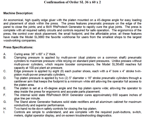 Omec Model ICA 600 Automatic Glue Machine Technical Data: On board machine installed power: 0.5kw Working pressure: Mpascal 0.7 Glue Type: vinyl glue Glue Tank Capacity: 32 Workpiece Limits Draw Length: min. 150mm max. 600mm Draw Width: min. 60mm max. 4050mm Draw Thickness: min. 4mm max. 25mm Standard Equipment ...more