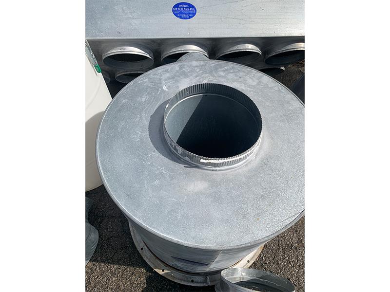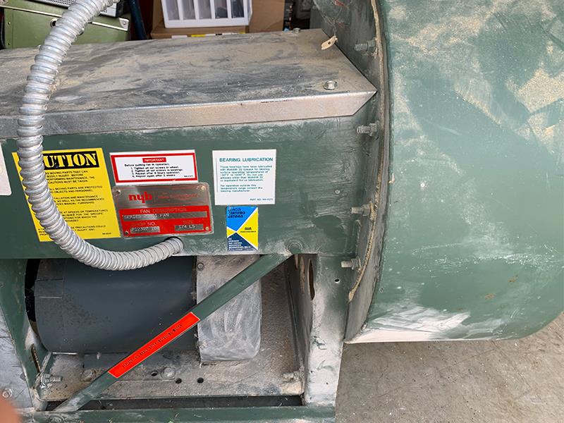 ONEIDA AIR SYSTEMS XXK050346 Cyclone Dust Collector w/ After-filter Plenum. Cyclone & Cartridge Fabric Filtration Dust Collection System for High Pressure CNC applications (need more static pressure for effective cleaning of cutter heads). -- Performance: 2,120 CFM @ 2" SP with Filter. 5 HP US Made BALDOR , Class F, TEFC motor. Magnetic Starter w/ on-off switch and overload protection. -- Fan/Wheel housing: Extremely strong cast aluminum, non-sparking (per NFPA fire code). Efficient Backward Inclined high performance and low noise. No rivets or welds. Fully welded fan housing 11 ga. Motor Housing plate. Includes: -- Cyclone: (8") solid welded inlet with Neutral Vane. Technology reduces filter maintenance. 16-gage cyclone barrel with solid welded construction. Rectangular outlet cam be rotated independent of inlet - 8-bolt patterns. Outlet is 10.03" x 7.64" inside dimensions. Square to round adaptor available. Approx. 26" dia. cyclone housing. -- After-filter plenum for (10) filter bagsDust collector is missing cyclone stand and filter bags. .