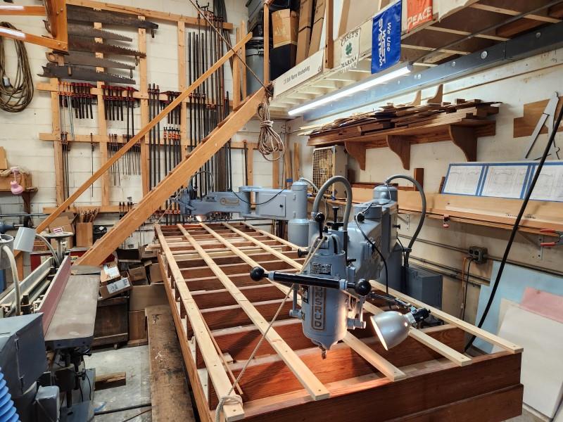 ONSRUD W-147-BE RADIAL ARM ROUTERThis Radial Arm Routers gives you the option of pattern routing operating in a 4' x 8' format. -- Great for all types of pattern routing. 5 HP Boosted to 14,700 RPM by a Brooks Frequency changer. -- All special clampsincluded. -- Router comes with a 4' x 14' Table for Clamping Down Work with Patterns and Also Includes Stands. -- The router is great for cutting Panel stock such as Plywood, Solid Surface Material, Many Plastics, and Non-Ferrous Metals. -- Excellent for cutting Plywood. -- Great for cutting Multiple Pieces without tying up your CNC Router.