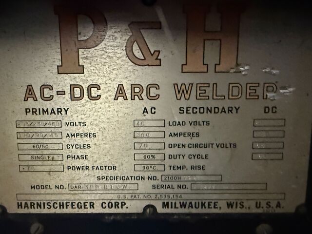 P&H DAR-300HFGW TIG Welder, 300A AC/DC for versatile welding needs. Operates on 208/230/460V input, single phase. Ideal for precision projects, well-suited for industry professionals. Used condition.