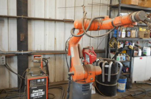 New Age Robotics / Panasonic-style PA102S Robotic MIG Welding Cell, Panasonic-style MIG welding cell including:, • Reconditioned Panasonic VR-006 robot with G2 controller – Mfd. ~2010, • Internal 350A Panasonic welding power source, • Panasonic robotic wire feeder, • 500A air-cooled ...more